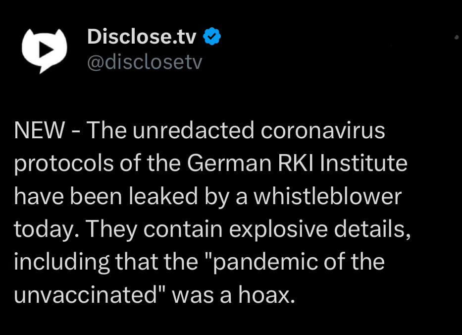 The unredacted coronavirus protocols of the German RKI Institute have been leaked by a whistleblower today.