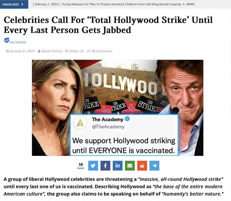 Celebrities call for ‘Total Hollywood Strike’ Until Every Last Person Gets Jabbed