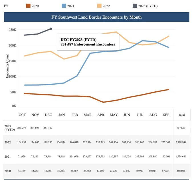 December set a new record for the most ever illegal crossings at the U.S. southern border — 251,487.