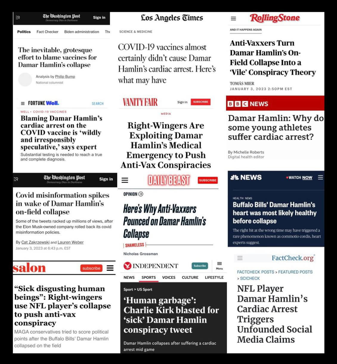 In case you need more evidence that it was probably the COVID vaccine that caused Damar Hamlin’s cardiac arrest, just look at the way the Fake News and fake fact-checkers attack anyone that dare question the safety of the Big Pharma jab as it relates to Hamlin’s collapse.