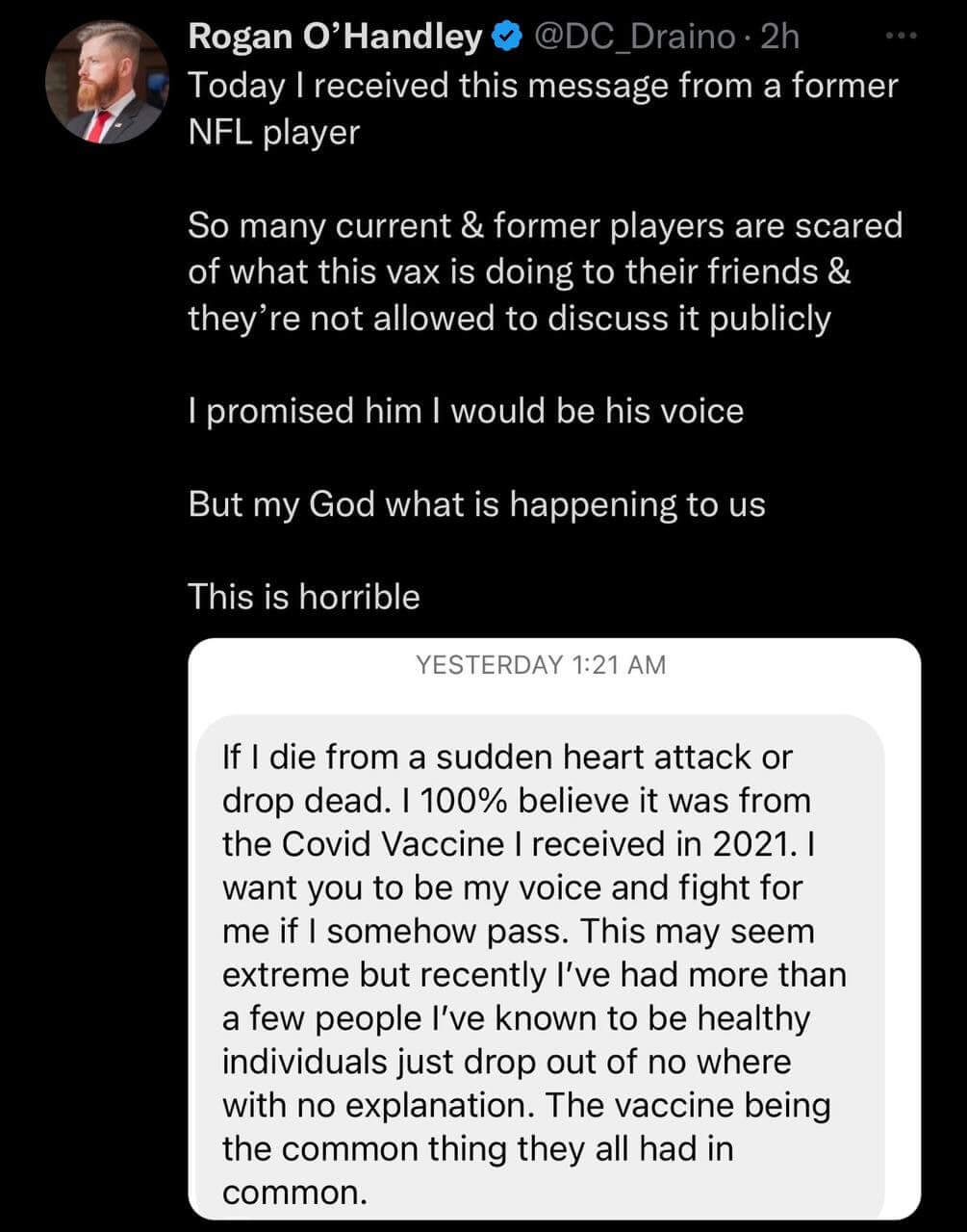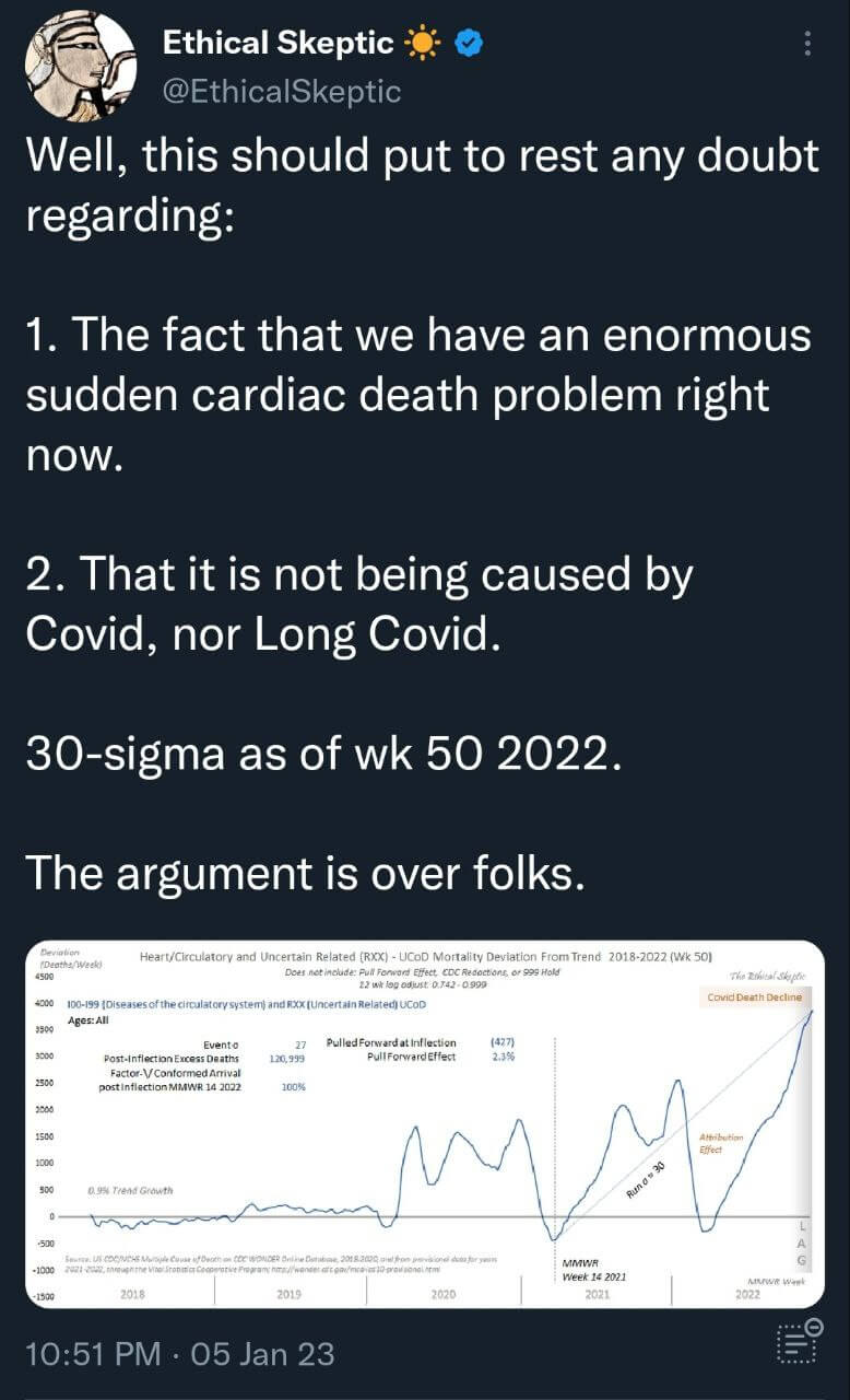 Even the Fake News has recognized that the COVID vaccine can cause heart issues, so why is it so forbidden to think it played a role here?