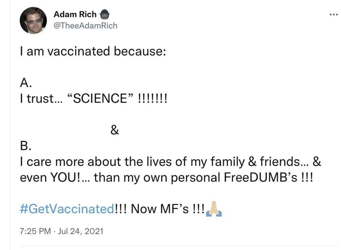 Adam Rich’s Tweet from July 2021: